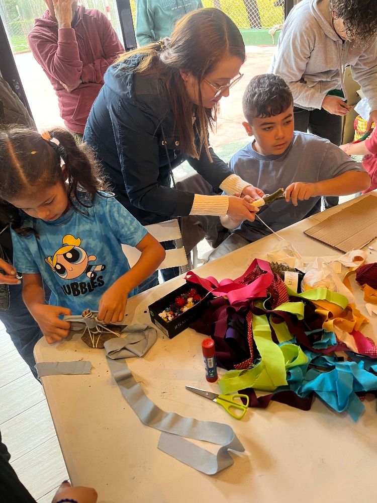 Quarante-deux participants étaient présents, dont des enfants, des jeunes et leurs familles. L'activité était animée par Melissa Ramirez (AMK) de Belgique. La plateforme permettait de la suivre en direct via YouTube Live et elle a été enregistrée afin que davantage de familles et de jeunes puissent y accéder. Le titre de l'activité était : Happy Chaos : Emballer avec du fil et du tissu. Il s'agit d'une des activités qui a également été réalisée lors du test pilote en juin. Dans ce cas, les jeunes et les enfants sont sortis au préalable pour collecter des éléments naturels pour leur création. L'activité a remporté un franc succès !
